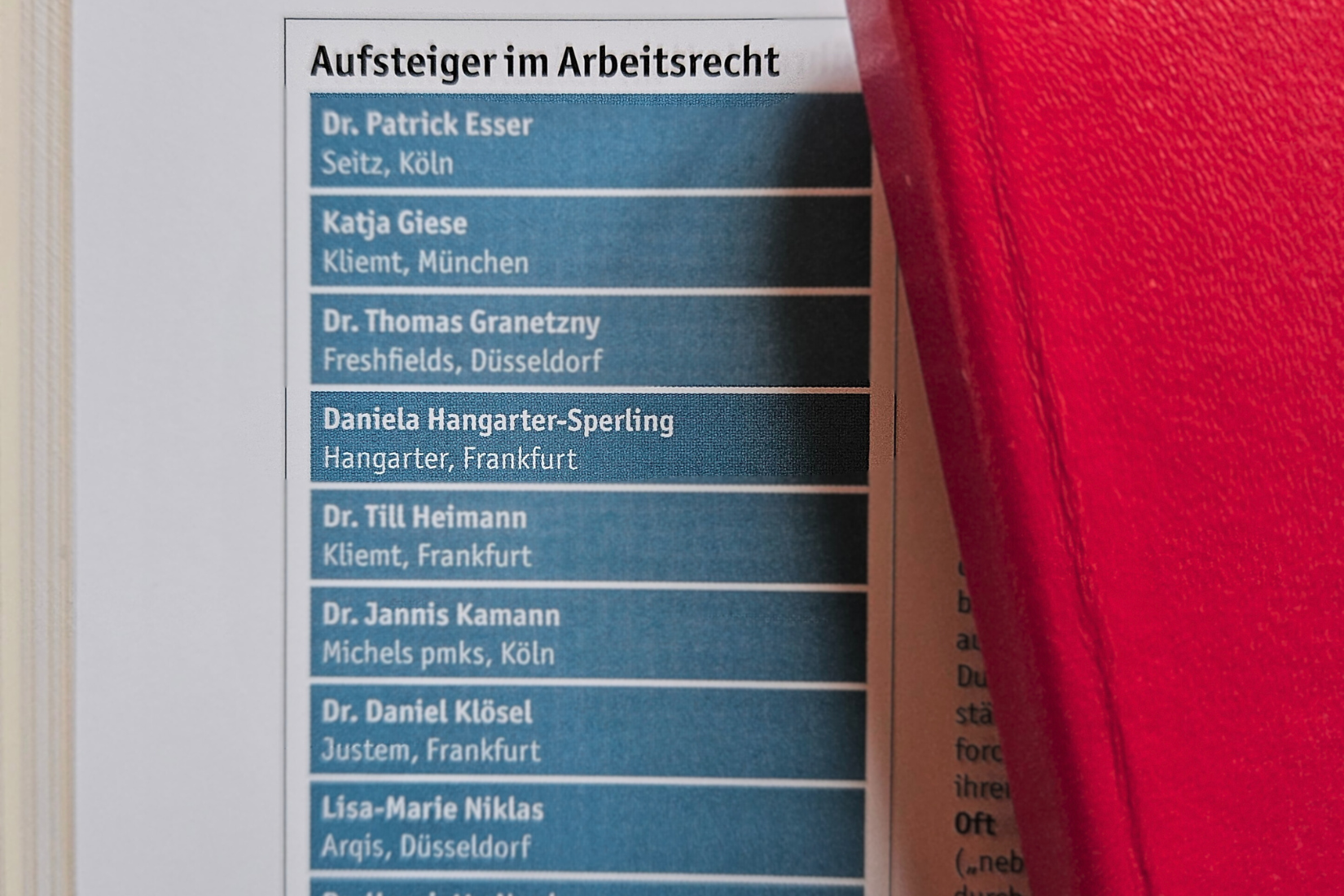Recommended for Germany – Labour & Employment by Lexology Index (formerly Who is Who Legal) 2023, 2024 and 2025. Daniela Hangarter-Sperling recognized as a Global Elite Thought Leader in the Client Choice category of Lexology Index 2025 and 2026.